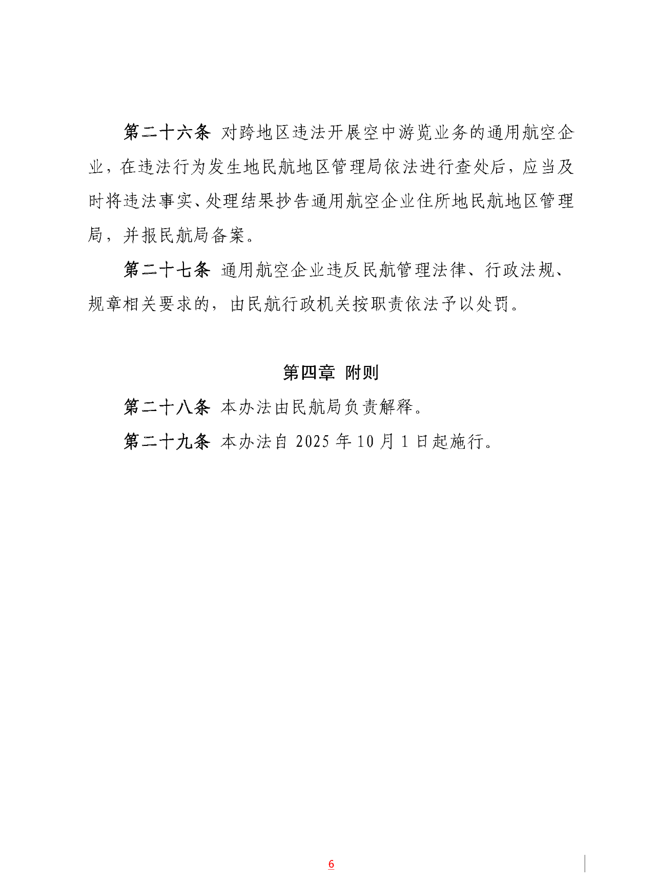9月15日,民航局正式发布《空中游览市场管理暂行办法》(民航规〔2025〕19 号)。据介绍,该办法旨在进一步规范通用航空空中游览市场监管工作,保护消费者合法权益,适用于在中华人民共和国境内(不含港澳台地区)开展通用航空空中游览的市场监管工作,将自 2025 年10 月1 日起施行。开展空中游览的通用航空企业,应当符合民航运行规章及本办法规定。办法特别强调,不得以体验飞行、体验带飞的名义开展空中游览经营性活动。全文内容如下: